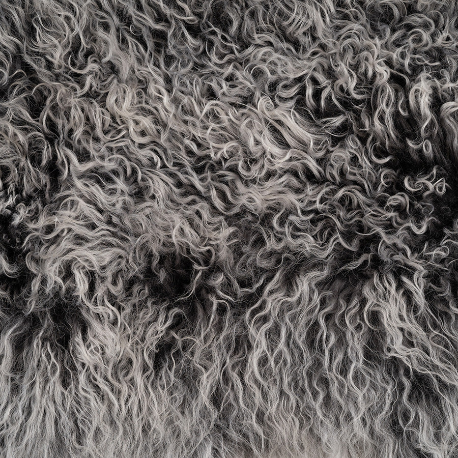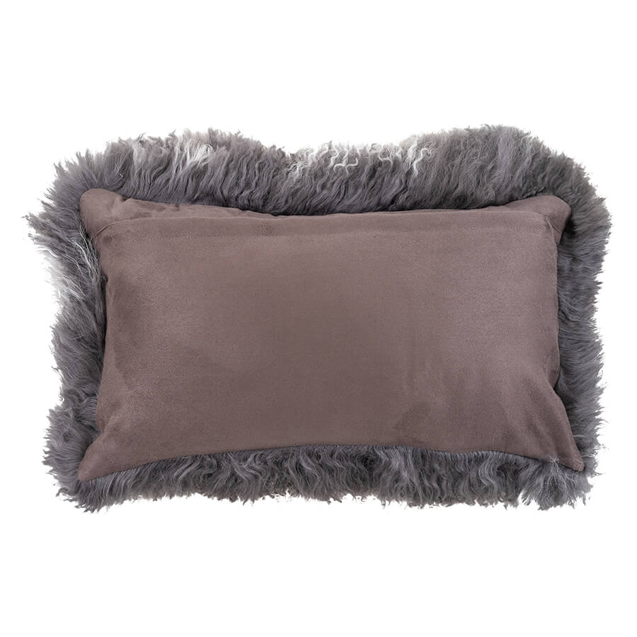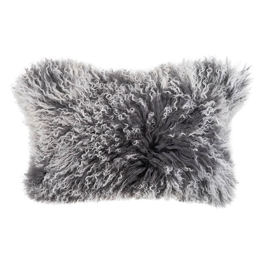 Mongolian Sheepskin Cushion - Charcoal White Tip Lumbar