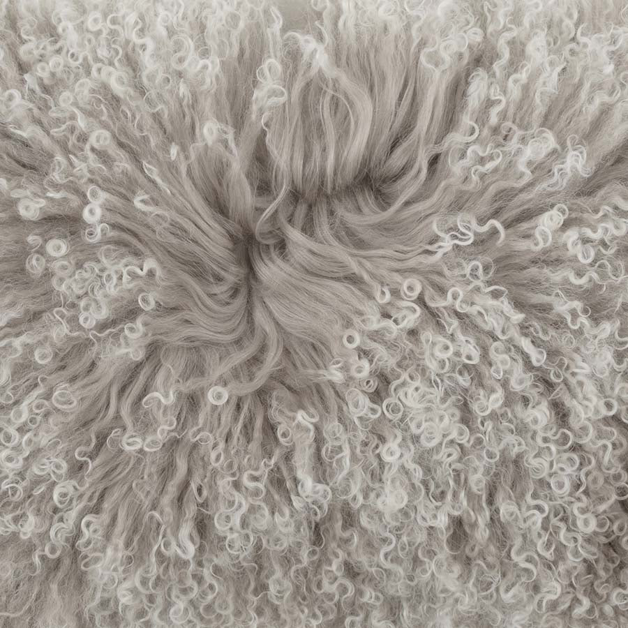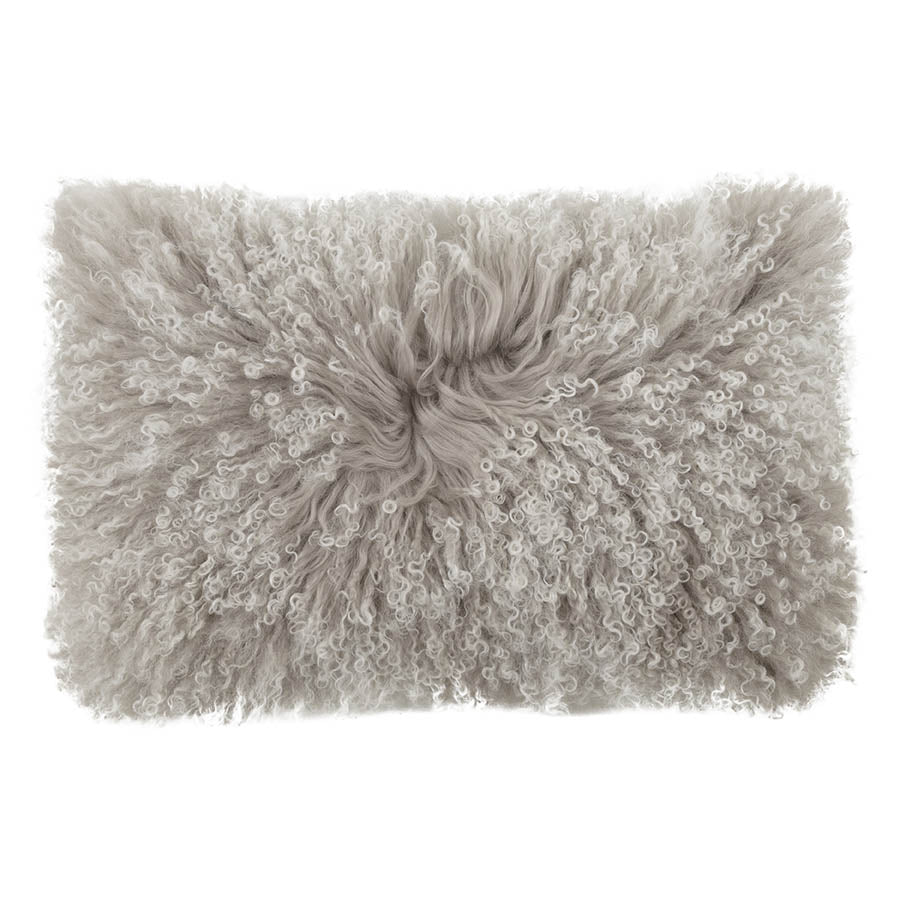 Mongolian Sheepskin Cushion - Grey White Tip Lumbar